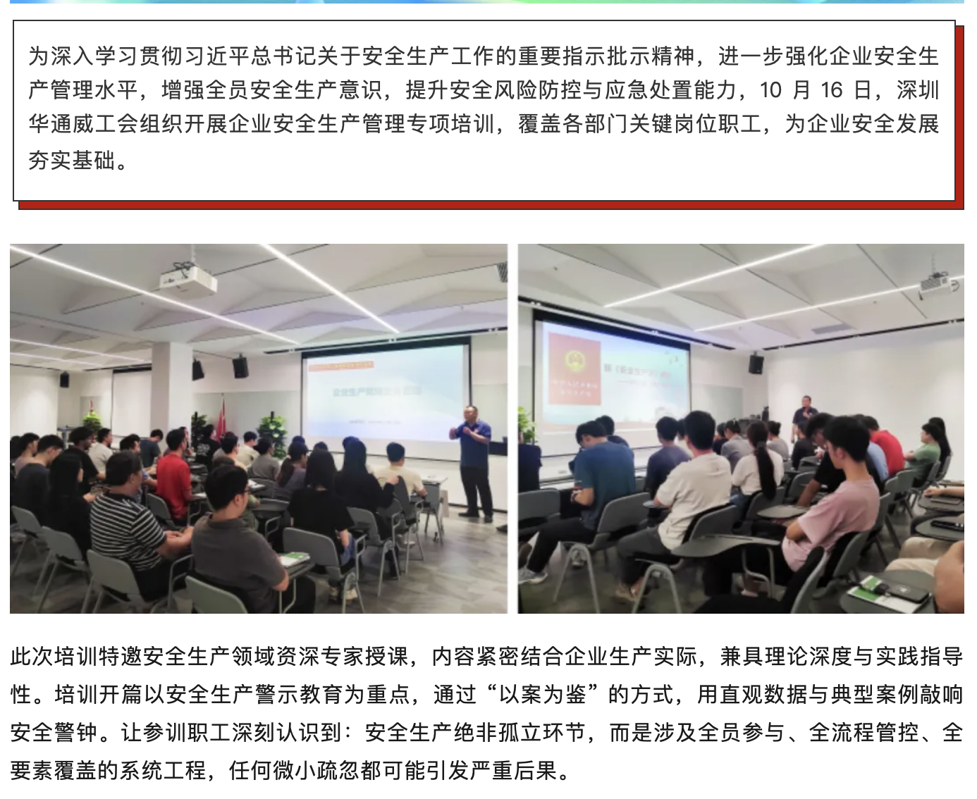 筑牢安全生产防线|深圳华通威工会组织开展企业安全生产管理培训
