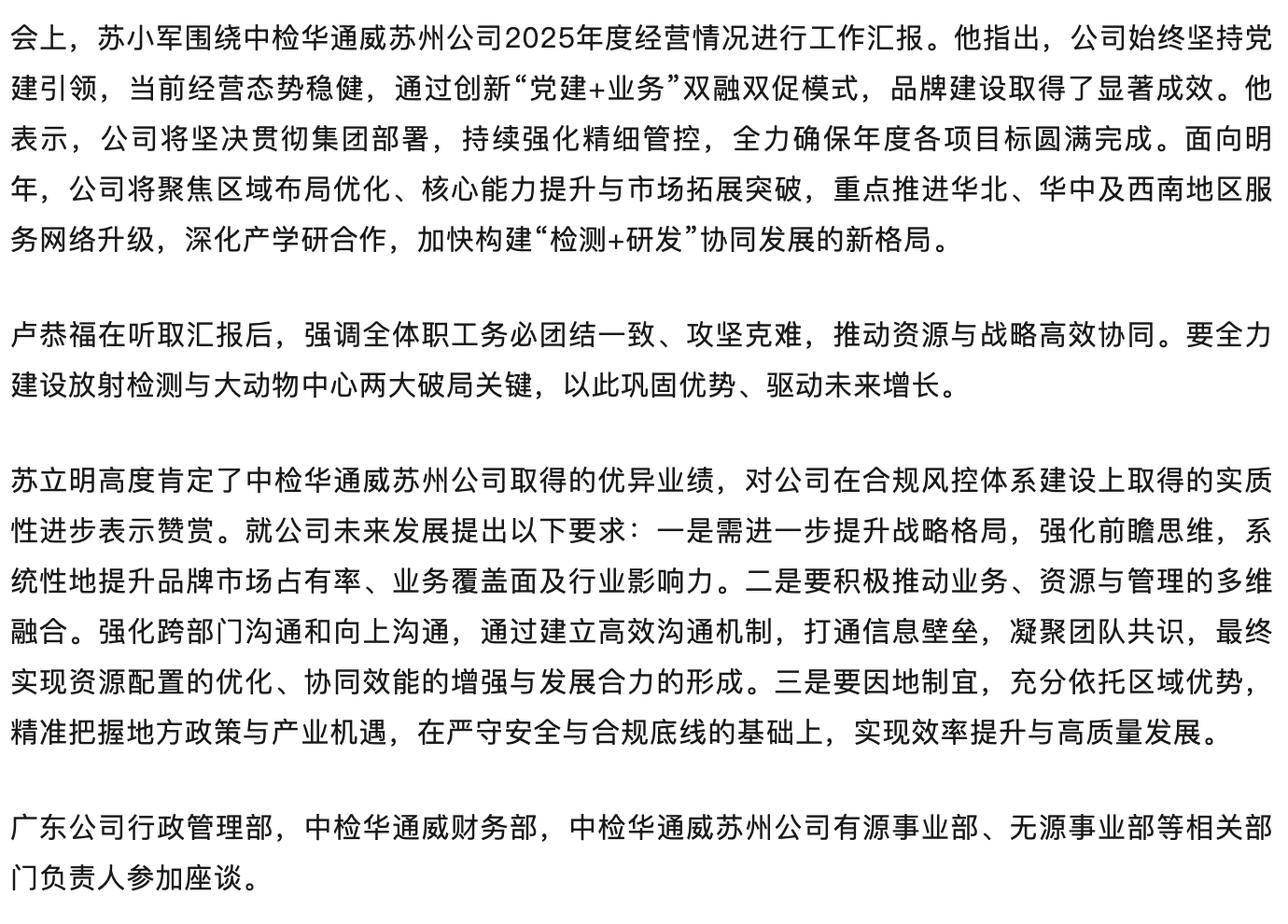 中国中检华南区域总部一行到中检华通威苏州公司调研指导