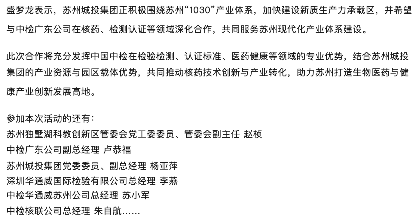 央地合作 | 中国中检广东公司与苏州城投集团战略签约