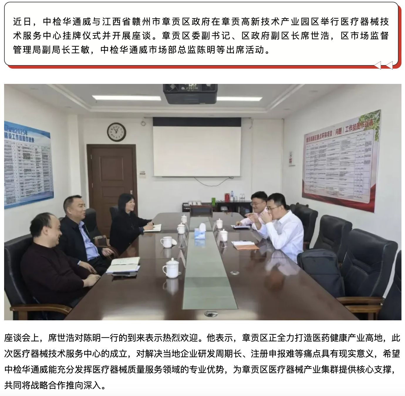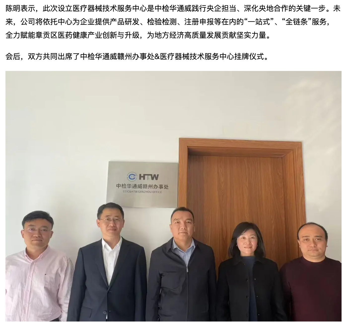 央地合作丨中检华通威与江西省赣州市章贡区政府联合成立医疗器械技术服务中心