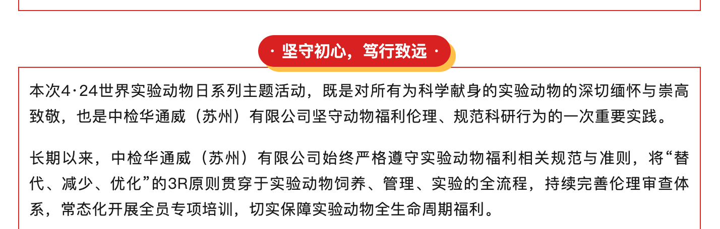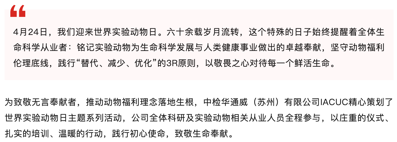 致敬无言功勋 坚守伦理初心——中检华通威苏州公司世界实验动物日主题系列活动圆满举办