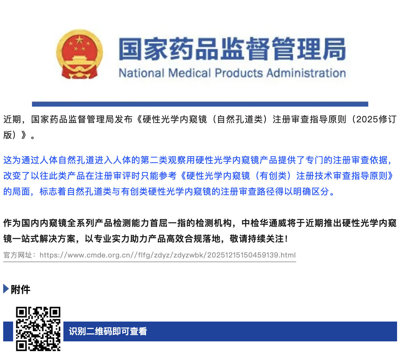 医疗资讯丨国家药监局发布硬性光学内窥镜(自然孔道类)注册审查指导原则(2025年修订版)