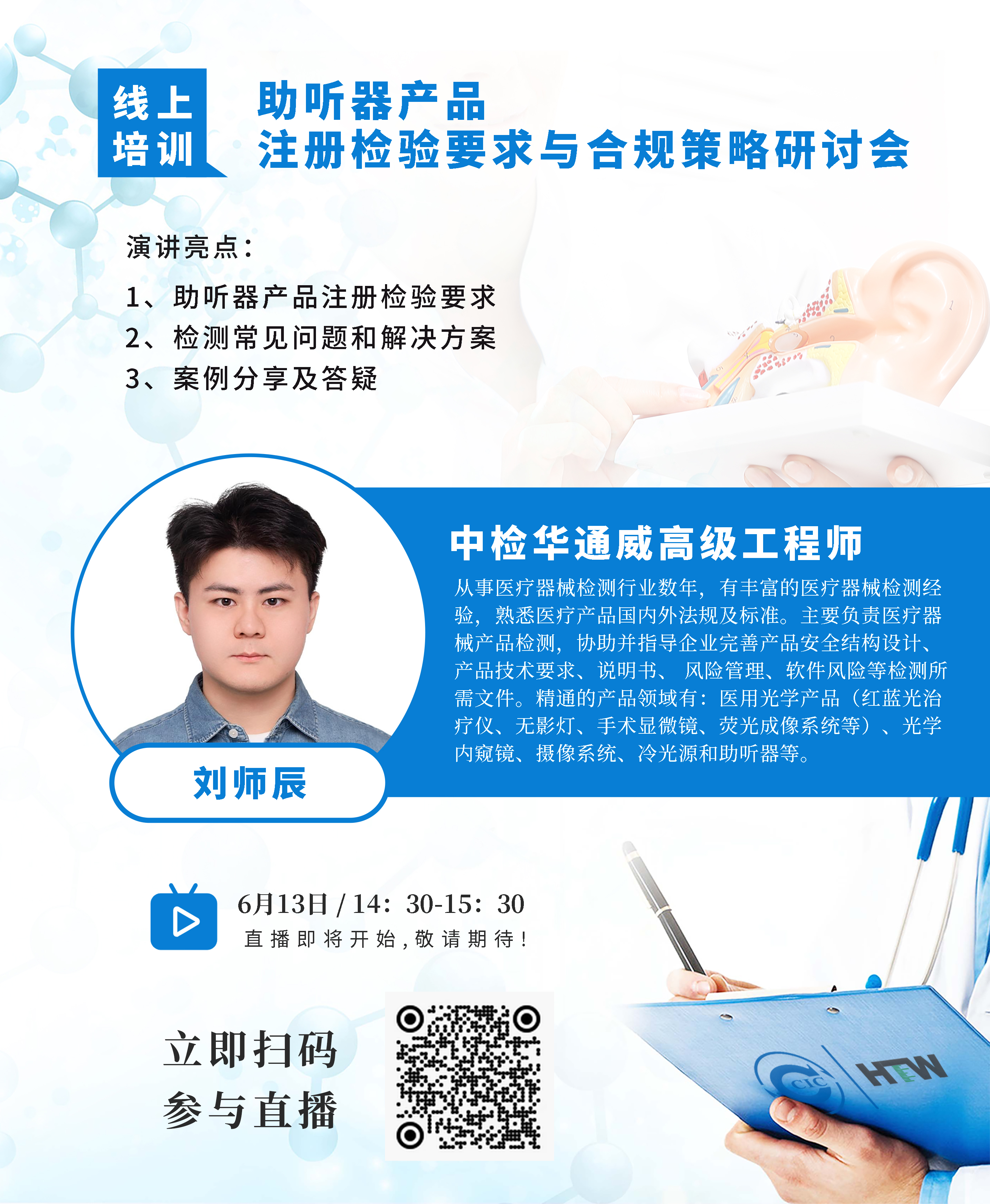 6线上直播丨助听器产品注册检验要求与合规策略研讨会