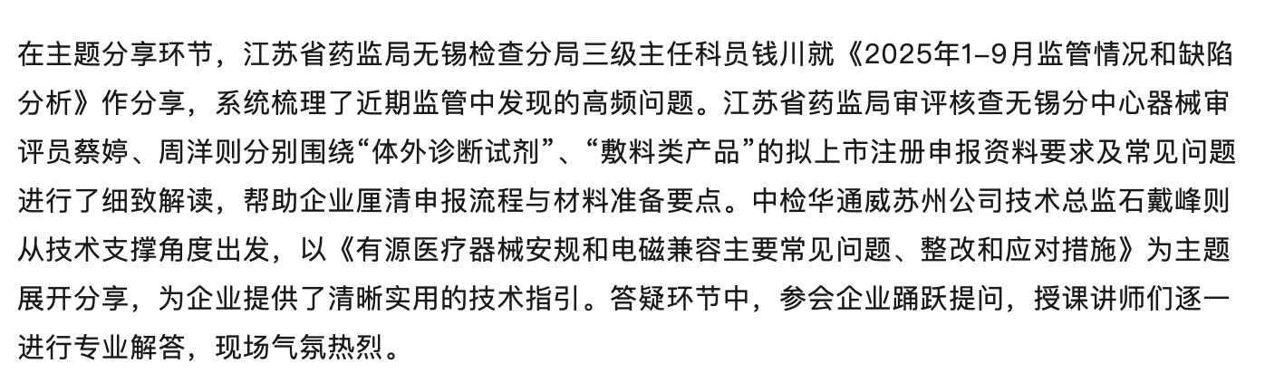 重要合作丨苏州有源医疗器械检验员实操技术夜校培训班成功举办
